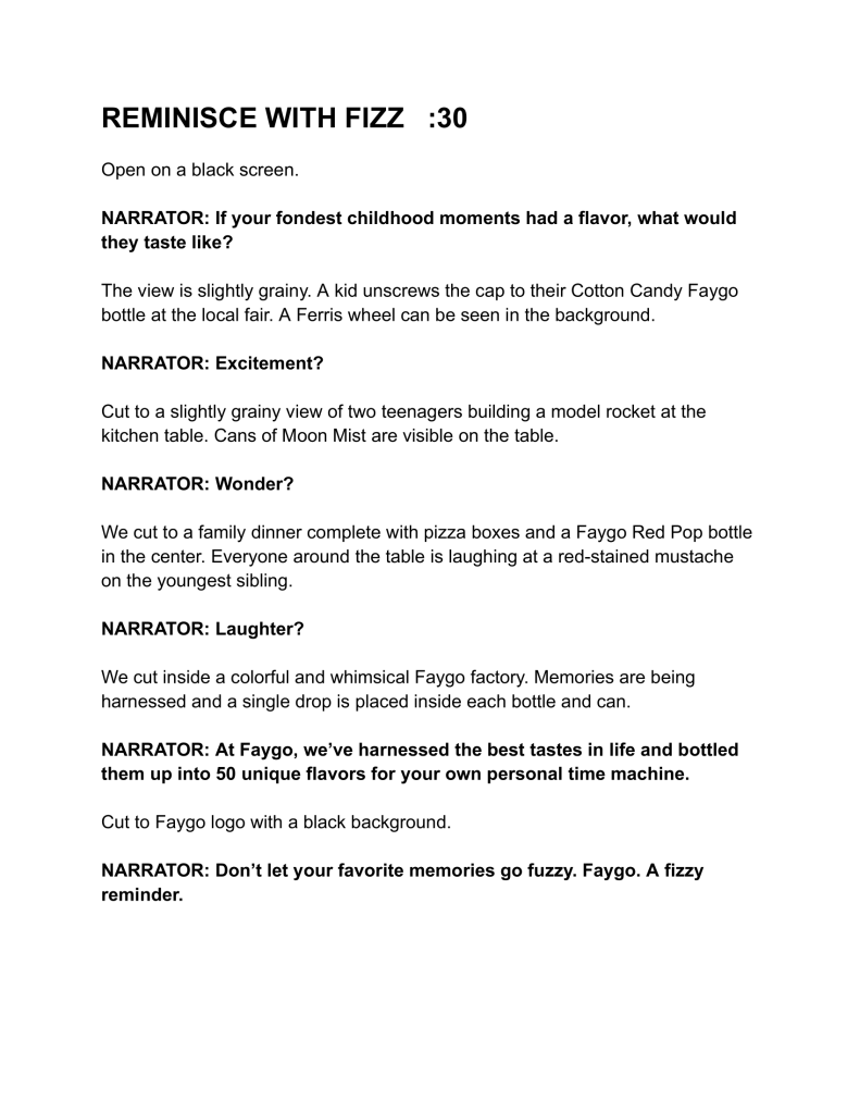 Inspired by my love of Rock & Rye, I wanted to take this colorful and lively brand and give it some heart in this spec commercial script.